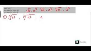 Menentukan Akar Persamaan Kuadrat Jawaban Soal Tvri 21 Juli from asset.kompas.com Pernah menjumpai model soal seperti ini? Sejauh ini, kamu sudah paham kan yang dimaksud dengan bilangan berpangkat. ( 5 x 2 ) 4 = 104 = 10000 (a 2 b 6 c 3) 2 = a 2 x 2 b 6 x 2 c 3 x 2 = a 4 b 12 c 6; Dalam sejumlah kasus di mana penayangan superskrip tidak dimungkinkan, misalnya pada dokumen bahasa pemrograman atau teks biasa, notasi x^2 atau x**2 dapat digunakan untuk menggantikan x 2. #2 merasionalkan pecahan yang penyebutnya berakar tipe penjumlahan pengurangan. Jadi, hasil dari (81) 3/4 = 27. Download tabel bilangan pangkat 3 dari 1 100 tabel bilangan akar pangkat 3 dari 1 sampai 100 png downloaded 1621 times 55 kb. Untuk dapat menjawabnya, ingat kembali sifat yang akan digunakan berikut ini.