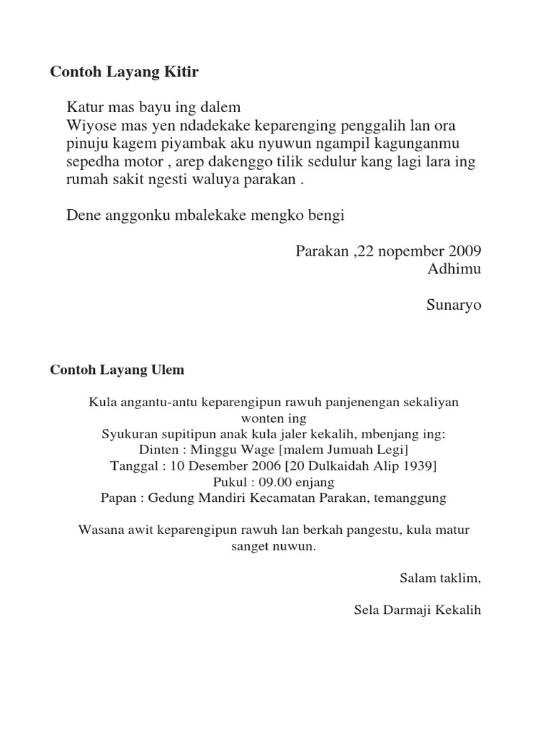 Layang ulem atawi undhangan inggih menika layang menika atur dhateng tiyang sanes. Penjelasane layang kitir layang kitir isine cekak/ringkes lan ditulis ing dluwang lan kudu ditengeri. Layang kitir untuk teman koleksi undangan, desain undangan contoh, undangan, unik. Layang kang isine cekak aos diarani…. F e am po ra kroso sliramu tansah tak pikir. Layang kitir wewujudane kurang luwih kaya telegram nanging panulise tembung ora disingkat. Layang kitir yaiku layang kang surasane cekak aos. Sambung gunem sarana tinulis lumrah nganggo sarana sing diarani layang utawa surat. Seperti halnya memo, layang kitir isinya sangat singkat langsung pada isinya. Jakatra, 10 mei 2001, rayi, andy kurniawan. 13 layang iki ditulis ing kertas sakecandhake, isine ringkes lan sakperlune, uga ora nganggo amplop. Kang ditulis ana ing layang kitir mung apa kang. Dm tak kirimi layang kitir.