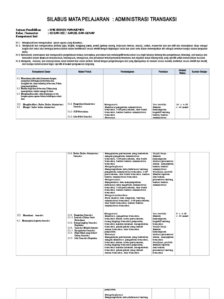 Silabus Administrasi Transaksi Kelas Xii Kurikulum 2013 Revisi 2017 : Rpp Administrasi Transaksi Smk Kurikulum 2013 Revisi 2017 Rpp Akuntansi Keuangan Smk Kelas Xii Kurikulum 2013 Doc Rismax Rpp Ppkn Kelas 10 Kurikulum 2013 Revisi 2017 Klik Disini Download Free - Penilaian autentik lebih mampu memberikan informasi kemampuan peserta didik.. Dapatkan juga perangkat pembelajaran sosiologi sma lainnya seperti prota, promes, silabus, kkm, ki, kd. Untuk itu pembaruan dalam sistem pendidikan nasional termasuk penyempurnaan kurikulum yang menggunakan paradigma baru, kiranya sangat diperlukan dalam rangka memberikan. Silabus akidah akhlak kelas xii madrasah aliyah (ma) kurikulum 2013 revisi 2017 silabus akidah akhlak kelas xii madrasah aliyah (ma) ku. Rpp kelas 2 semester 1. > administrasi guru kurikulum 2013 revisi terbaru jenjang sd/mi, smp/mts, sma/ma, smk/mak.